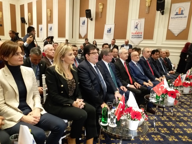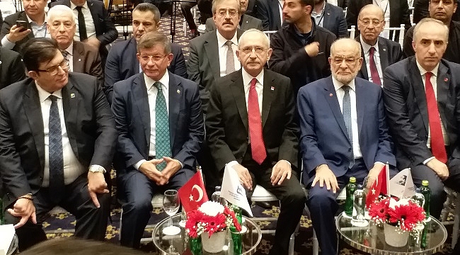 Türkiye’den beyin göçü sorununu anımsatan Kılıçdaroğlu, “Alıyoruz, yetiştiriyoruz, okutuyoruz tam verimli çağa geliyor. Türkiye yerine Kanada’ya, Danimarka’ya gidiyor. Maliyet bize, kar onlara. Bu tabloyu yaratan kim? Siyasi anlayış. Buna artık teslim olmayın. Yani ayağınıza kurşun sıkmayın” dedi. Türkiye’nin üreten bir ülke olması gerektiğini kaydeden Kılıçdaroğlu, “Türkiye’nin borçlanmaması lazım. Tarımda, fabrikada, üniversite, sanat alanında üreteceksiniz. Üreten bir toplum zengin bir toplumdur. Üreten bir toplum geleceğe güven ile bakar, üreten bir toplum alın terine değer verir, üreten bir toplumda huzur ve ferah vardır. Üretiriz ama hepsini bir kişi alır, üretiriz, bir avuç kişi alır. Bunun adaletle dağıtılması lazım” ifadelerini kullandı. Toplantının ardından Kılıçdaroğlu, Karamollaoğlu, Davutoğlu ve Kaftancıoğlu bir süre baş başa görüştü.