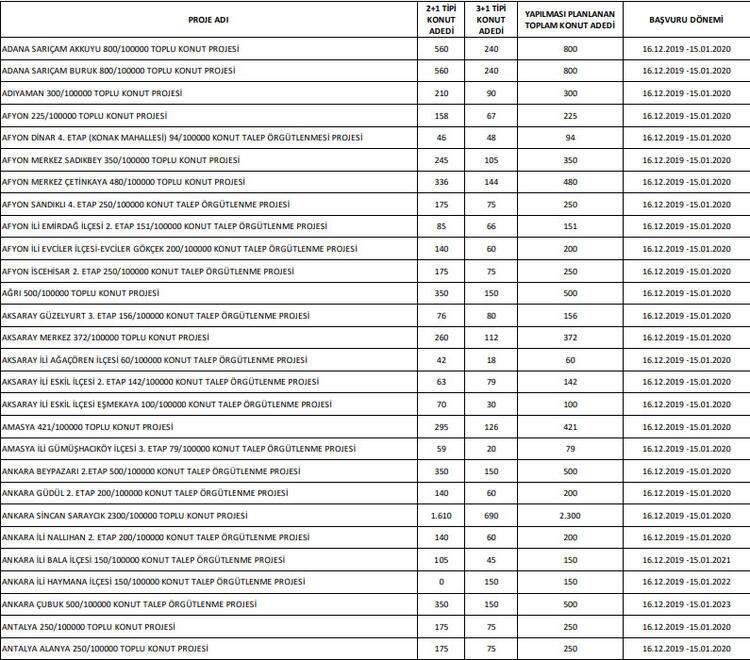 İşte, TOKİ'nin inşa sürecine başlayacağını duyurduğu proje merkezleri ve bulundukları ilçeler...